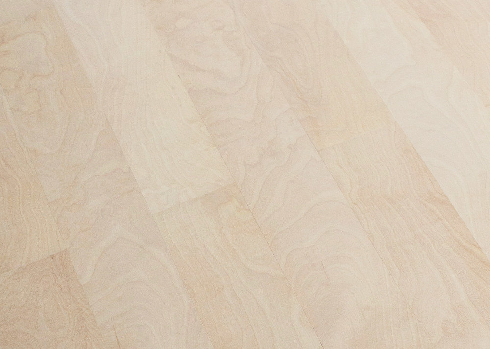 The white European Birch comes with a generally fine grain with uniform texture. The color is a very pale yellow-to-white which resembles Maple. Due to its medium hardness and bright appearance Birch parquet is especially suited for domestic use.