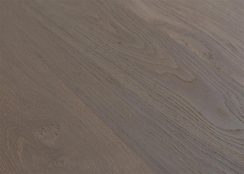 A brushed surface emphasizes the structure of the wood and its natural grain. The visual appearance is characterised by the brownish-grey matt open-pored finish.