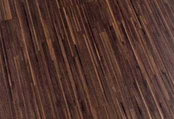 Combining small stripes of Walnut to a regular parquet plank brings the typical walnut color into effect but adds a totally different appearance to the flooring. This is one of the most modern parquet designs.