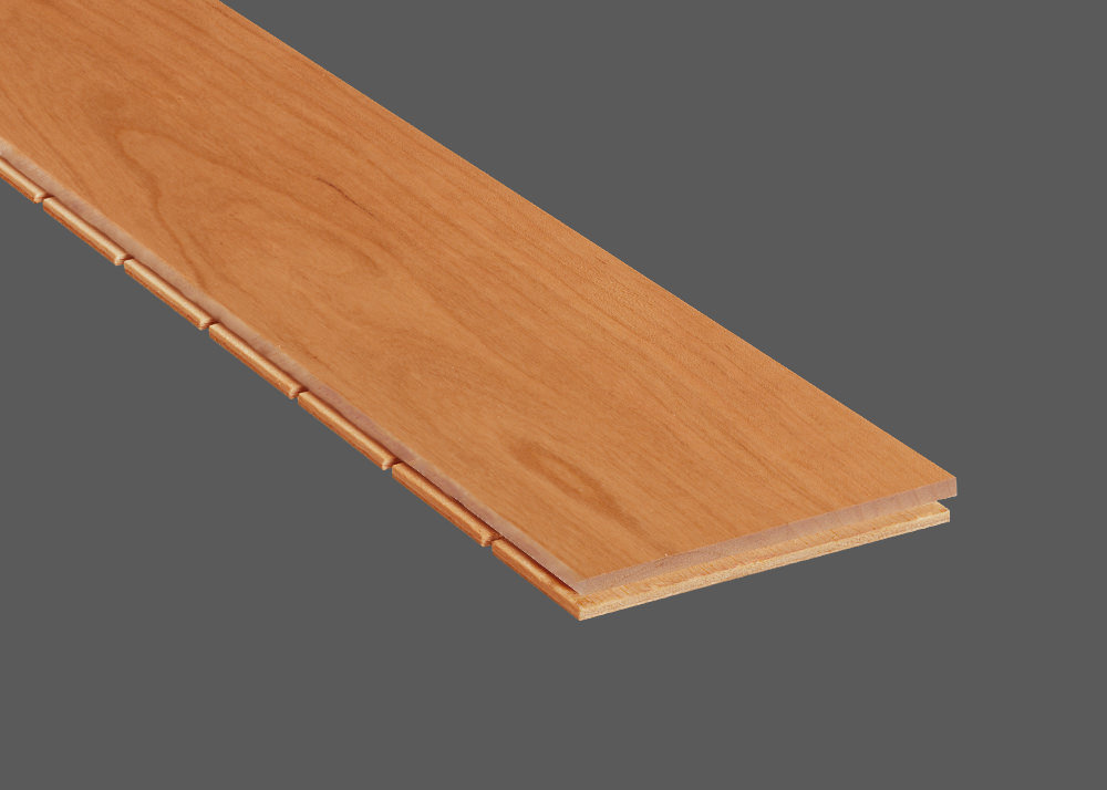 Das von uns verwendete Kirschholz ist in Nordamerika beheimatet (amerikanische Kirsche). Die Farbgebung ist hellbraun-rötlich-orange. Der Gesamteindruck ist recht lebendig mit einem großen Anteil an blumig-marmorierter Maserung. Das verlegte Parkett schafft eine helle und freundliche Atmosphäre.