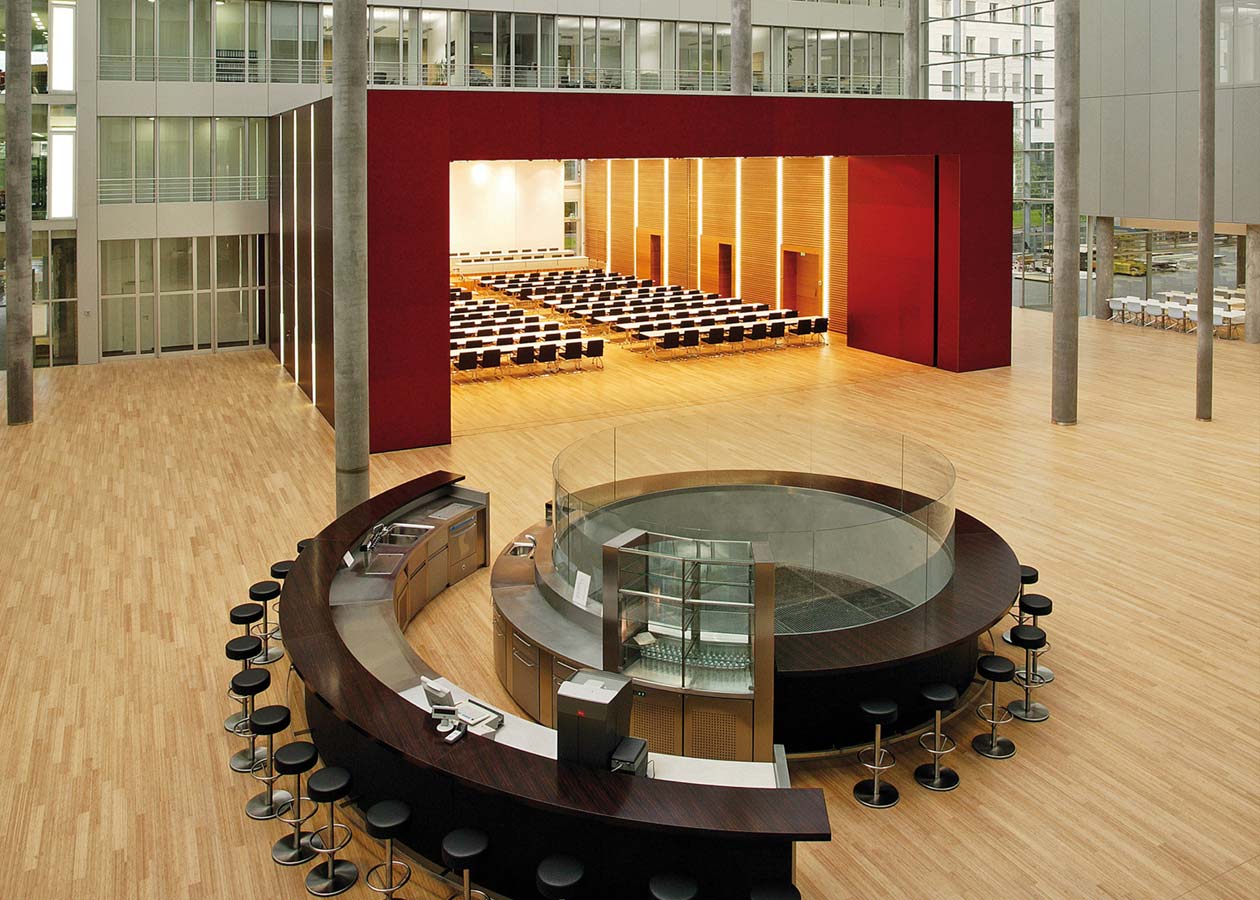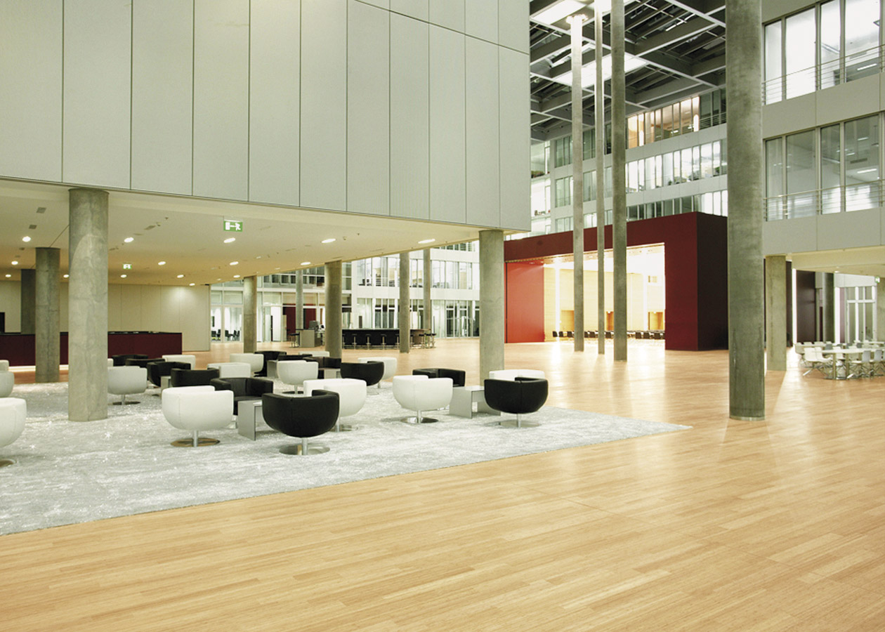 Im Ärztehaus in Düsseldorf wurden 3.800m² Werner Floors® 2-Schicht Bambusparkett Hochkantlamelle Classic 1000x95x10mm 7-Pro UV-lackiert verlegt.